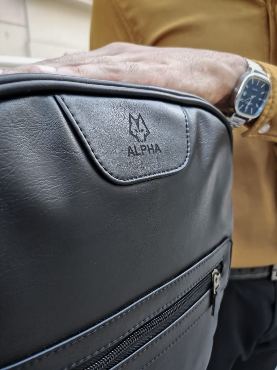 شنطة ظهر رجالي جلد 🔥 ماركة Alpha ✨