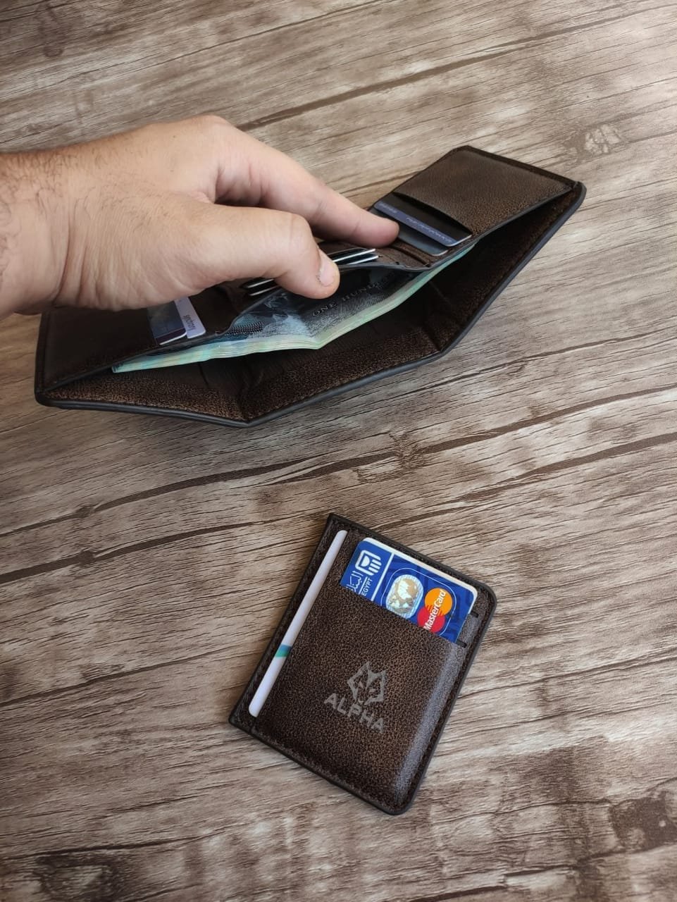 محفظة رجالي ثلاثية الطي باللون بني مشحم